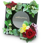 シックな木製のフレームにプリザーブドフラワーを美しくアレンジしました。結婚式、二次会やパーティーを、より素敵に演出いたします。また、ご希望のお客様のみミラ−に挙式日、お名前を入れさせてきます。